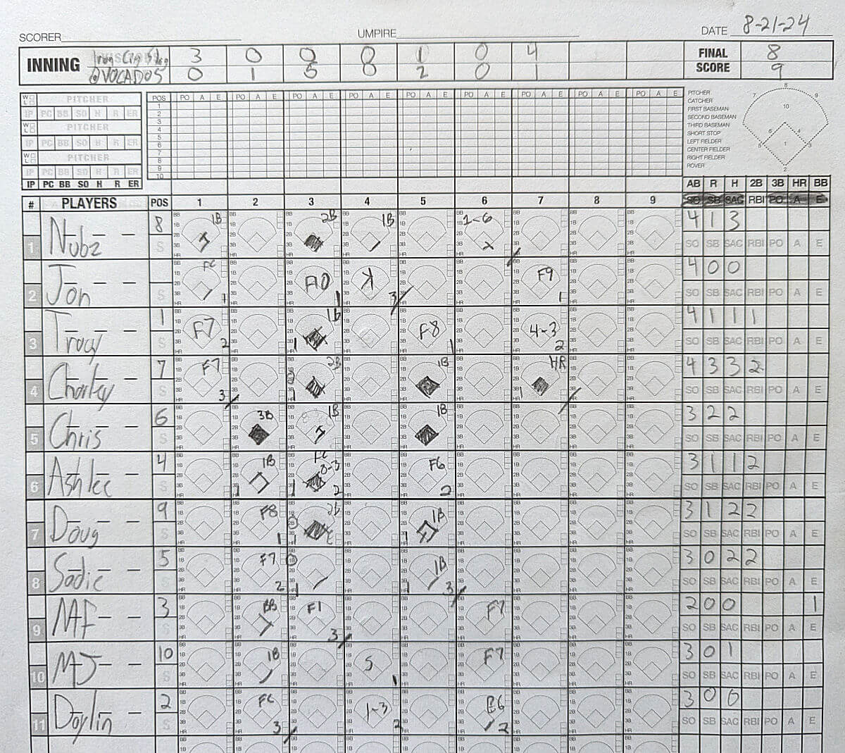 | 3B | Sadie Freund Sadie F. | 3 | 0 | 2 | 2 | 0 | 0 | 0 | 0 |