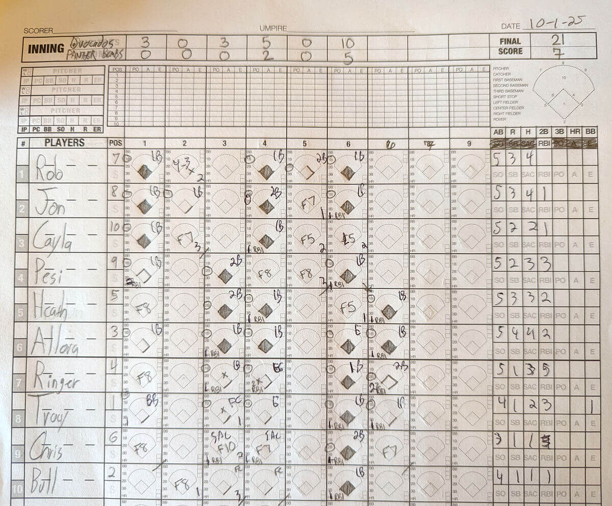 | 2B | Chris Ringer Chris R. | 5 | 1 | 3 | 5 | 0 | 1 | 0 | 0 |