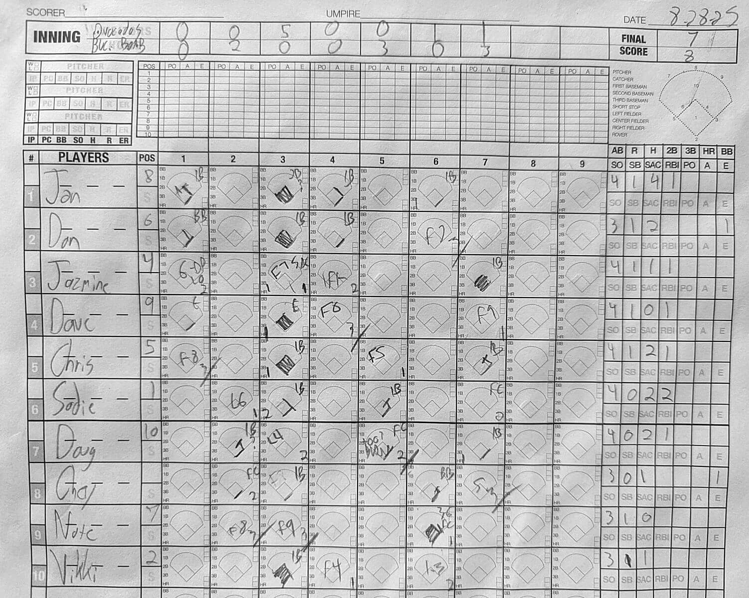 1B | Cheyanne White Cheyanne W. | 3 | 0 | 1 | 0 | 1 | 0 | 0 | 0 |