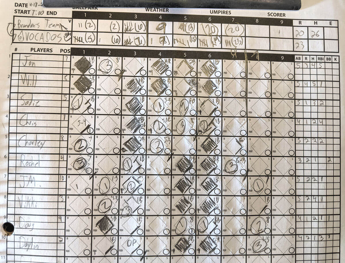 | Nov-05-20 | vs. The Ball Burnishers | Win, 15-8 | |