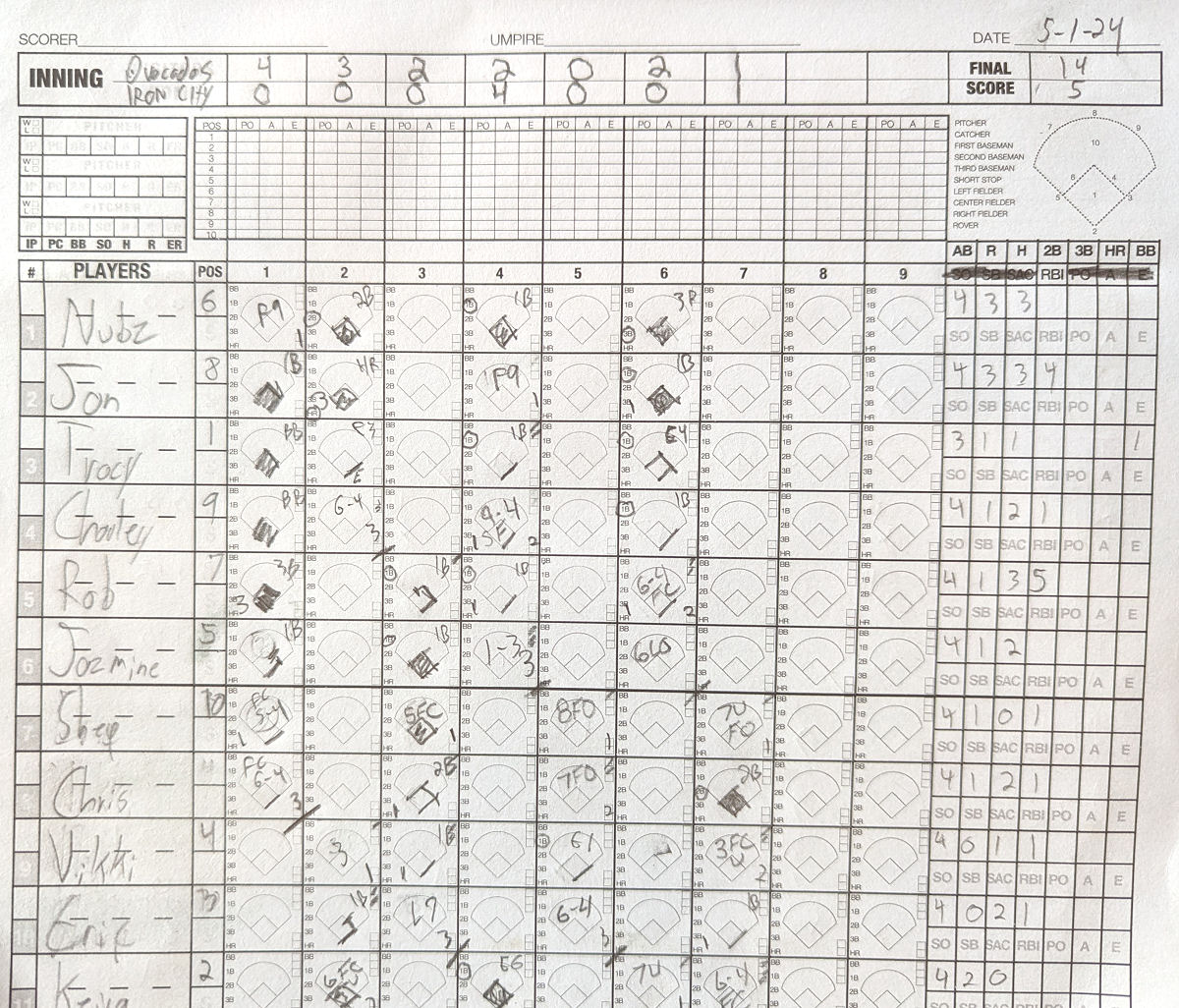 | 2B | Vikki Pickard Vikki P. | 4 | 0 | 1 | 1 | 0 | 0 | 0 | 0 |