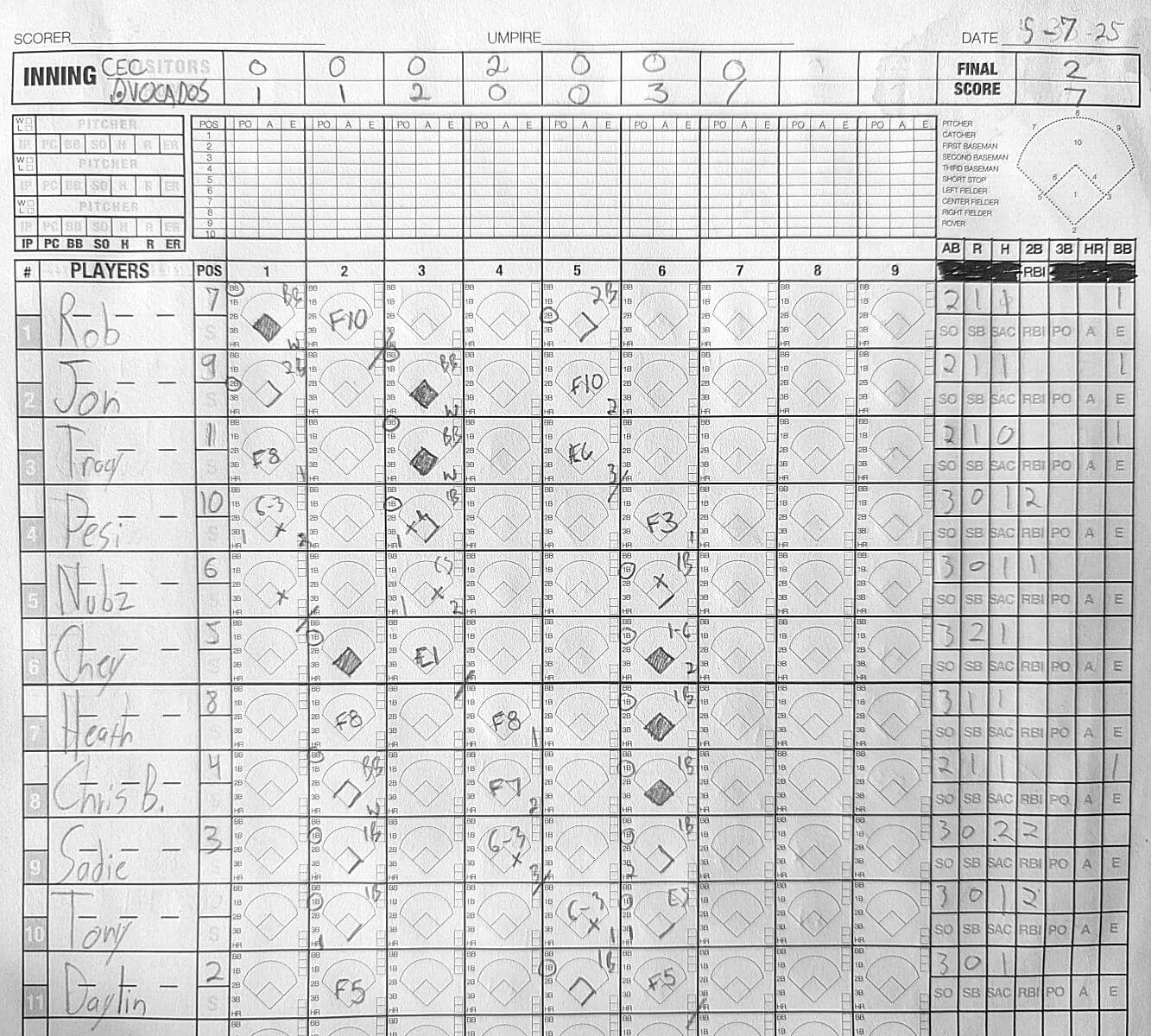 | 1B | Sadie Freund Sadie F. | 3 | 0 | 2 | 2 | 0 | 0 | 0 | 0 |