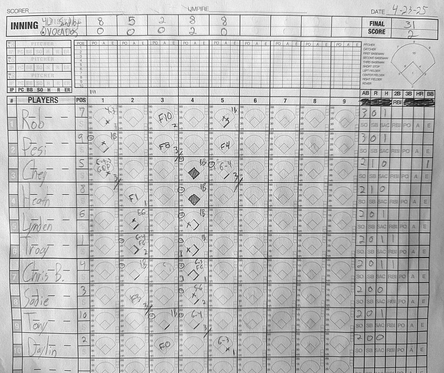 | 3B | Cheyanne White Cheyanne W. | 2 | 1 | 0 | 0 | 1 | 0 | 0 | 0 |