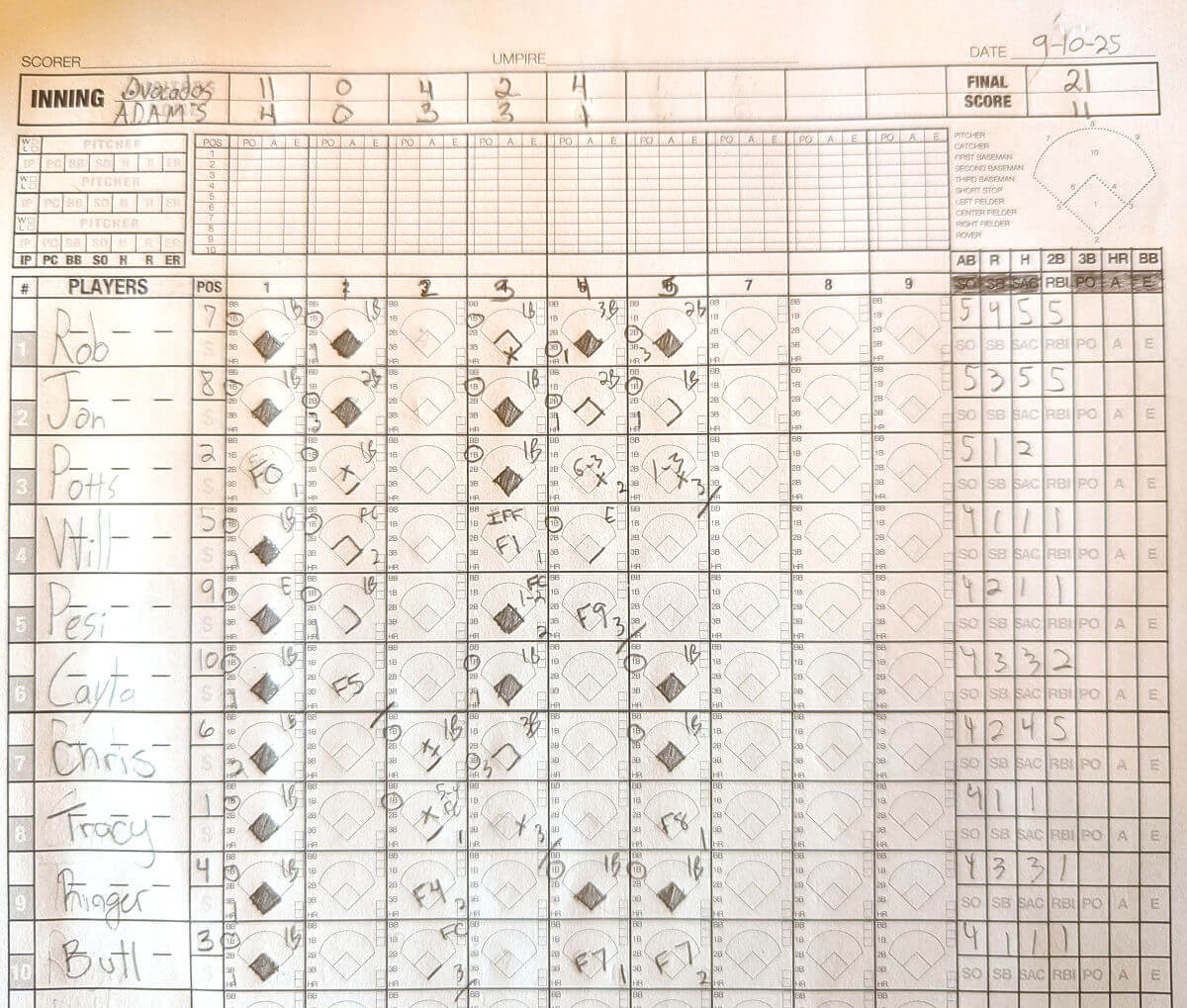 | LF | Rob Hill Rob H. | 5 | 4 | 5 | 5 | 0 | 1 | 1 | 0 |