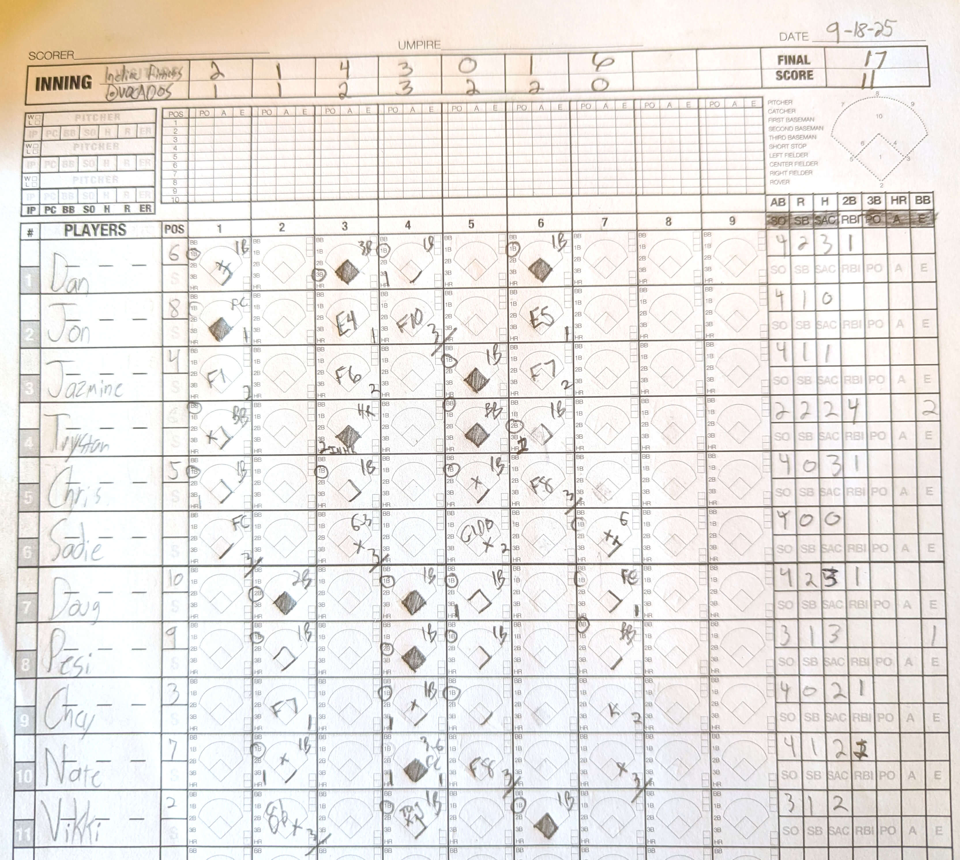 | 1B | Cheyanne White Cheyanne W. | 4 | 0 | 2 | 1 | 0 | 0 | 0 | 0 |