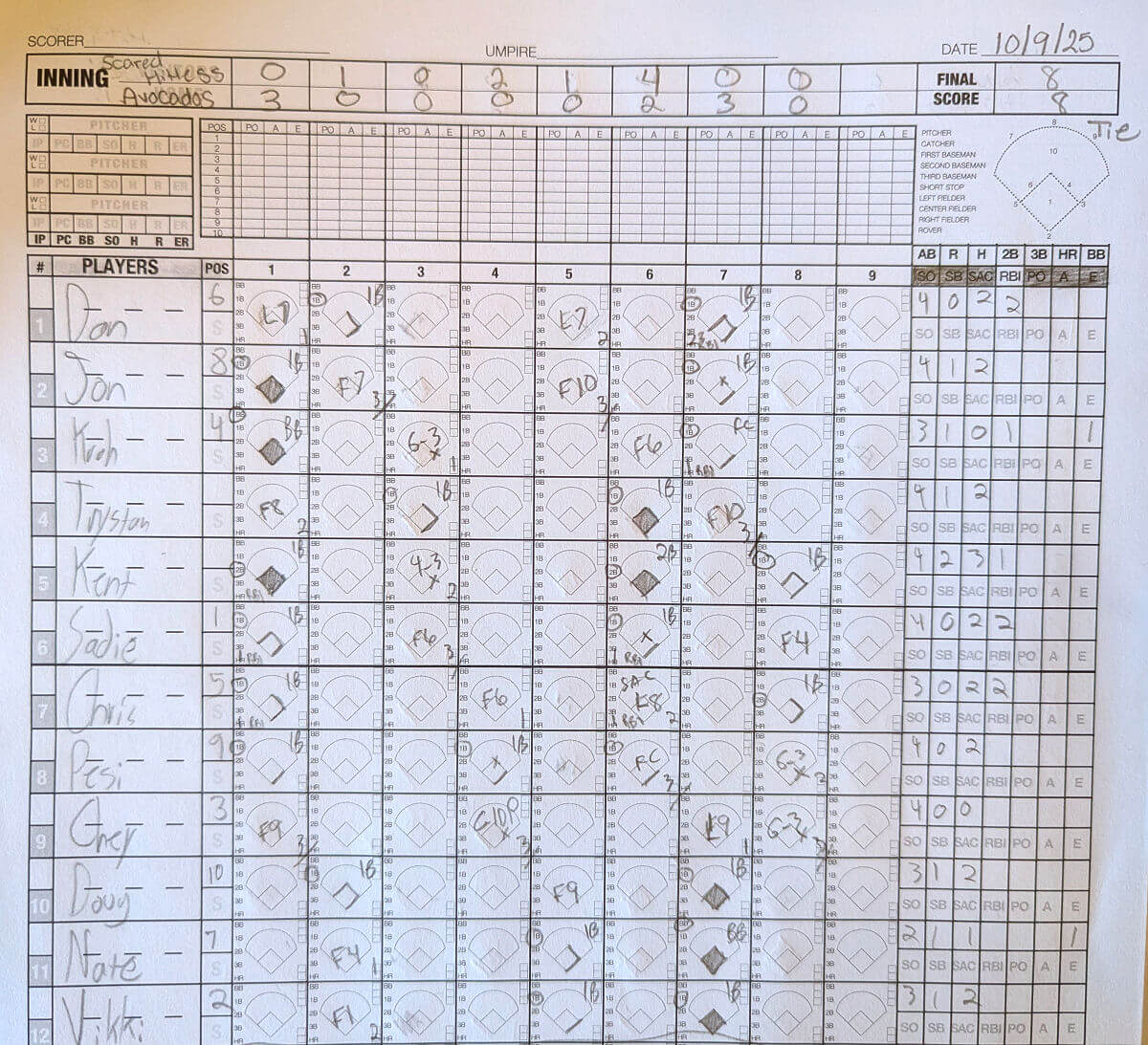 | 3B | Chris Bowyer Chris B. | 3 | 0 | 2 | 2 | 0 | 0 | 0 | 0 |